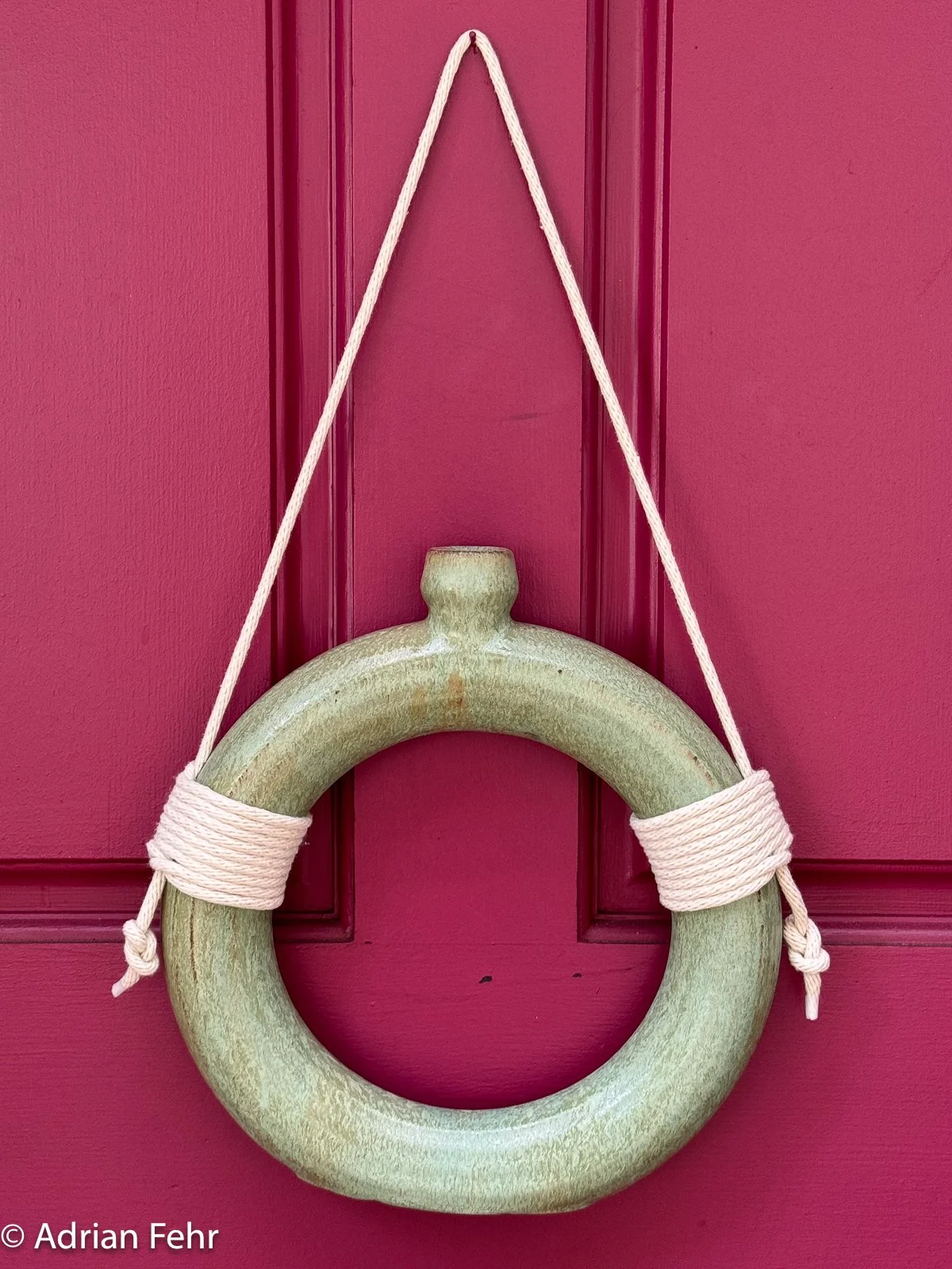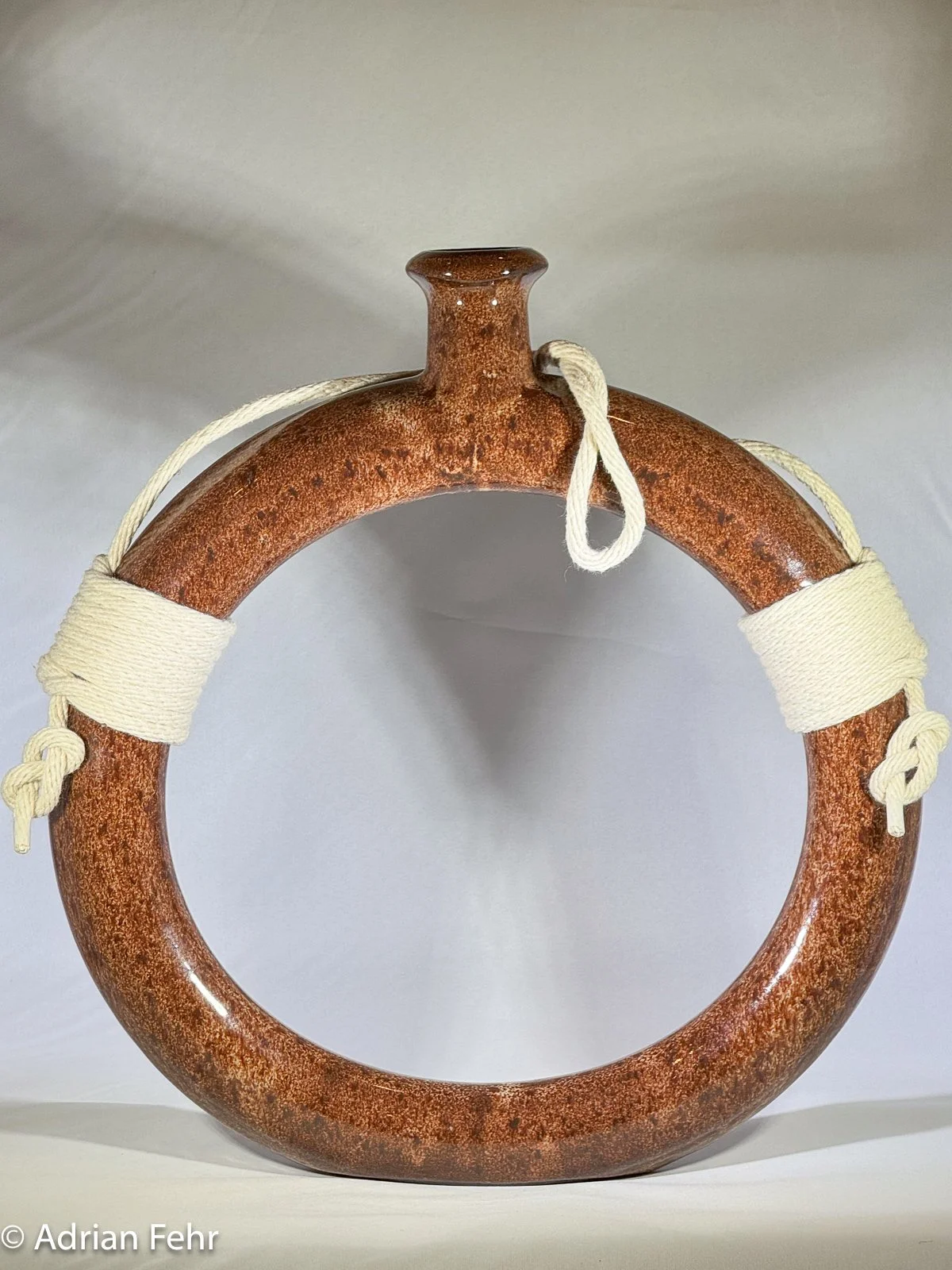 Donuts Tasty, fun, a pretty shape, and a hard closed form to throw well on the wheel. Is it a water bottle or a hanging vase? Horseback riders used them since they are easy to lash, but they look pretty good with just a flower too.