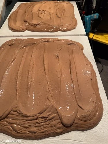 Pour your new slip onto a drying board and cover with a thin breathable sheet. The drying board can be plaster bats, sheetrock, or even plywood. Construction details are below!