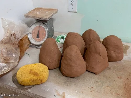 8 Mix and wedge. Once the clay is getting towards the right dryness, I cut and stack pieces that will fit in a bag and let the moisture equilibrate for 1-2 days. You can add or remove moisture as needed, but I keep my clay softer, wedge it well to remove air bubbles, and then dry further to desired consistency.